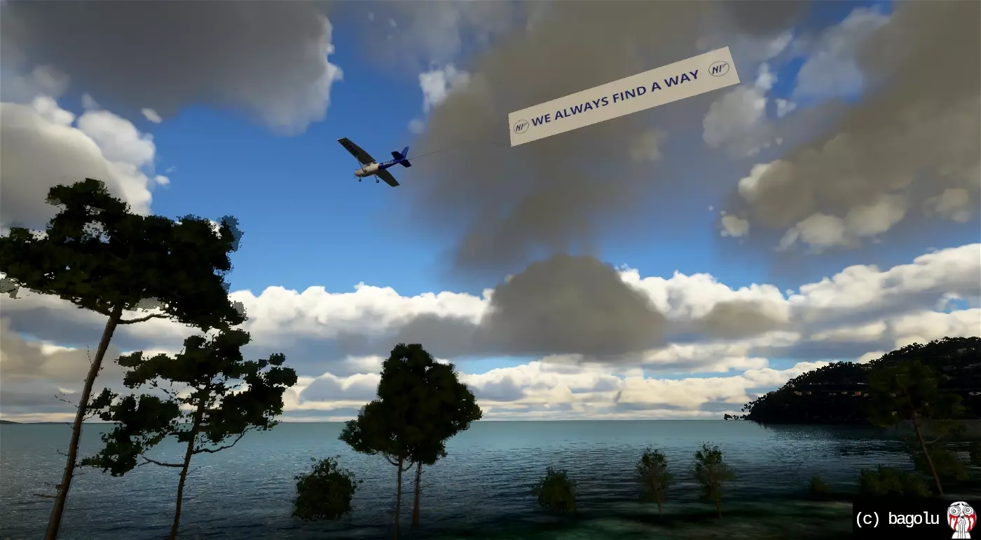 - Don’t forget to “drop” the banner before landing (water-rudder shortcut : CTRL+W)