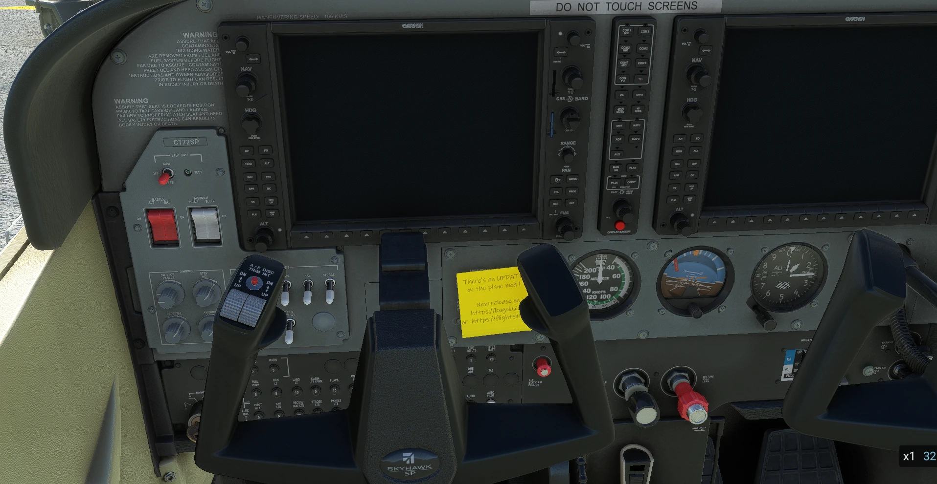 When installing this mod, it replaces the default Skyhawk AS1000 (no new plane in the hangar). You’ll have to select the “default” Asobo C172 Skyhawk AS1000 plane from the hangar.